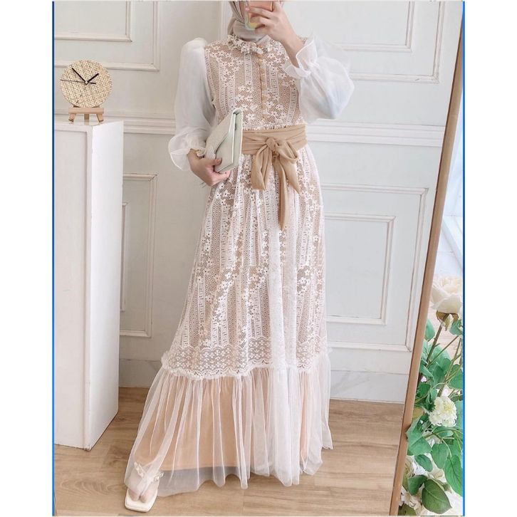dress wanita drees maxi brukat cantik busui sleting depan size m l dan xl dress fashion dress inara maxi