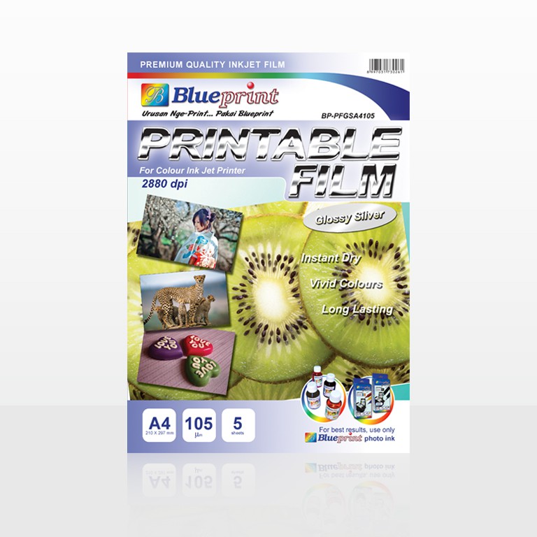 Kertas Film Glossy Silver Printable BLUEPRINT A4
