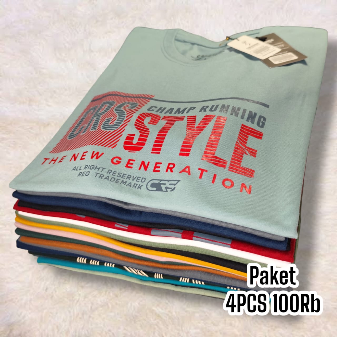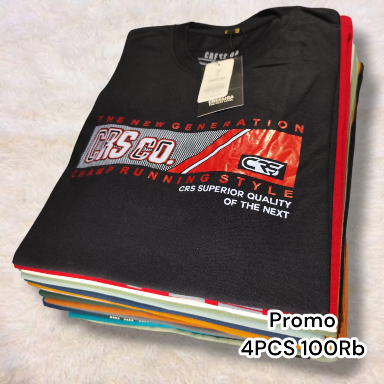 4 PCS 100 RIBU KAOS CRESSIDA PRIA SEMI COTTON 24S - KAOS LENGAN PENDEK PRIA ROUND NECK REGULER FIT