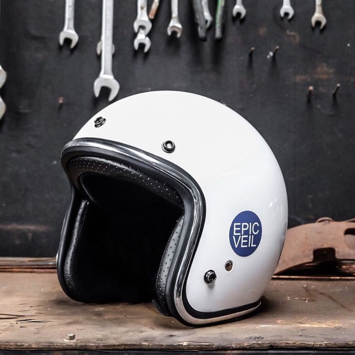 HELM HALF FACE EPIC WHITE GLOSSY LIST CHROME SNI HELM BOGO MURAH KEREN LIMITED EDITION BEST SELLER