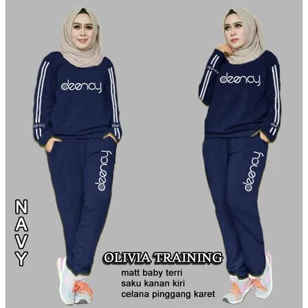 TERLARIS Set Baju Senam Cewek Kekinian Setelan Baju Senam Lapangan Training Biru Putih Zumba Aerobik Olahraga Panjang