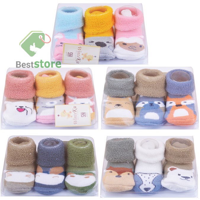 Kaos Kaki Bayi premium 3 Pasang Winteku Kaos Kaki boneka 0-6 Bulan
