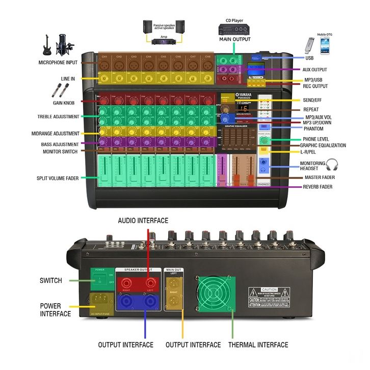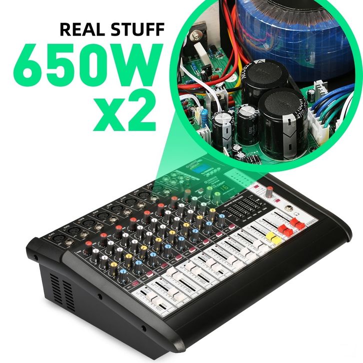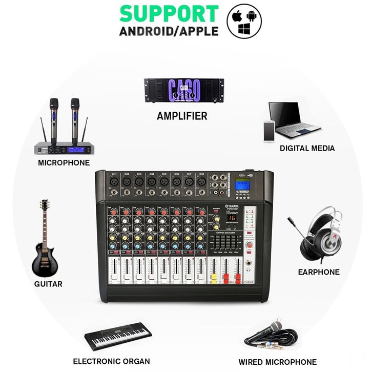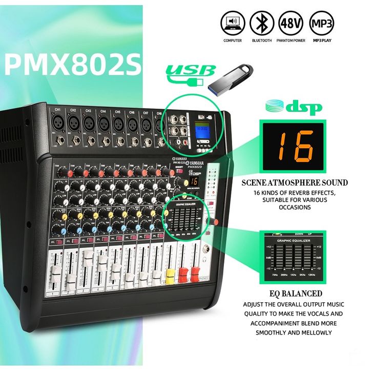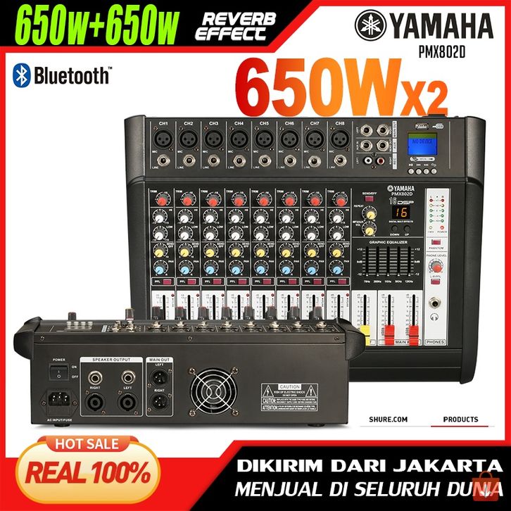 MIXER AUDIO PROFESIONAL YAMAHA PMX802D 8 SOUND STRIP BUILT-IN 650 WATT POWER AMPLIFIER 2 SALURAN 16DSP LAYER 2 EQUALIZ