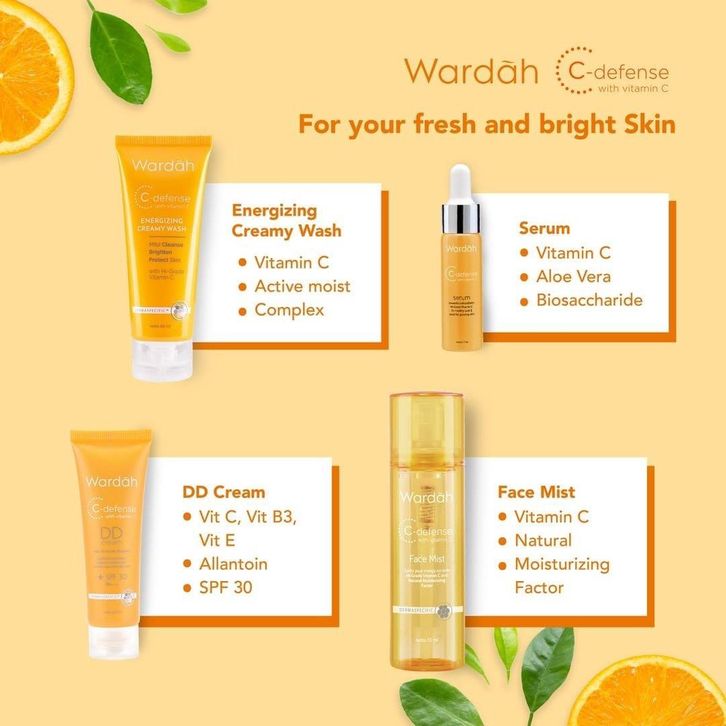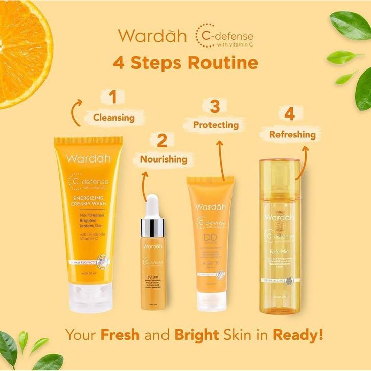 Paket Wardah C Defense Skincare Putih Glowing Cerah Lengkap 6 in 1 (3 pcs/ 5 pcs/ 6 pcs) ❤ Creamy Wash, Serum, Mousse Mo