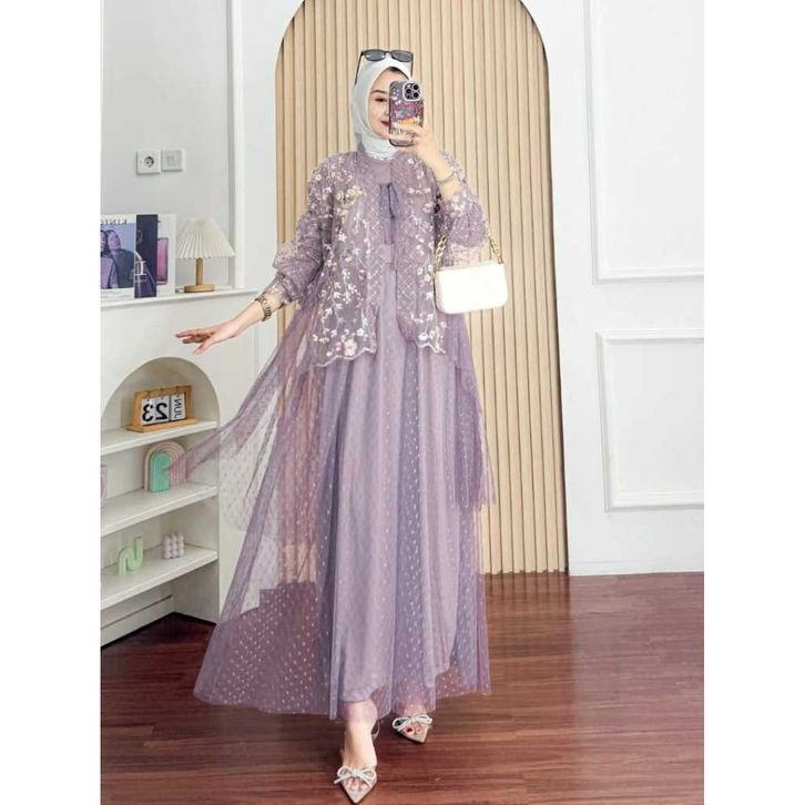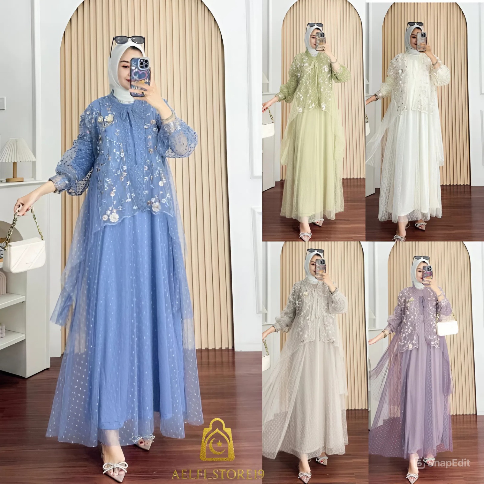 GAMIS BRUKAT WANITA KEKINIAN TERBARU MUTHIA DRESS 2 IN 1 MATERIAL JERSEY MIX BROKAT TILLE GAMIS KONDANGAN MEWAH ELEGAN