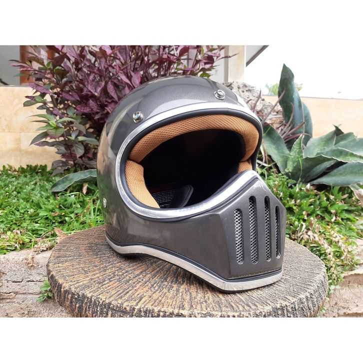 Helm Cakil Custom Full Face Original Klasik Pria Wanita Terbaru 2022 Retro Solid Modular - Helm Cakil Bandit Retro Full