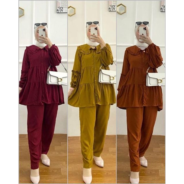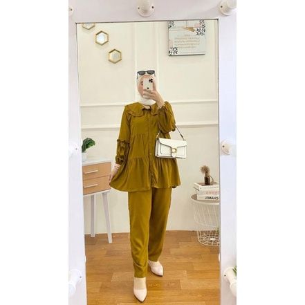 Galeriazkiya Erina Oneset One Set Babydoll Setelan Tunik Polos Setcel Rayon Polos Jumbo Busui Full Kancing Hidup Aktif B