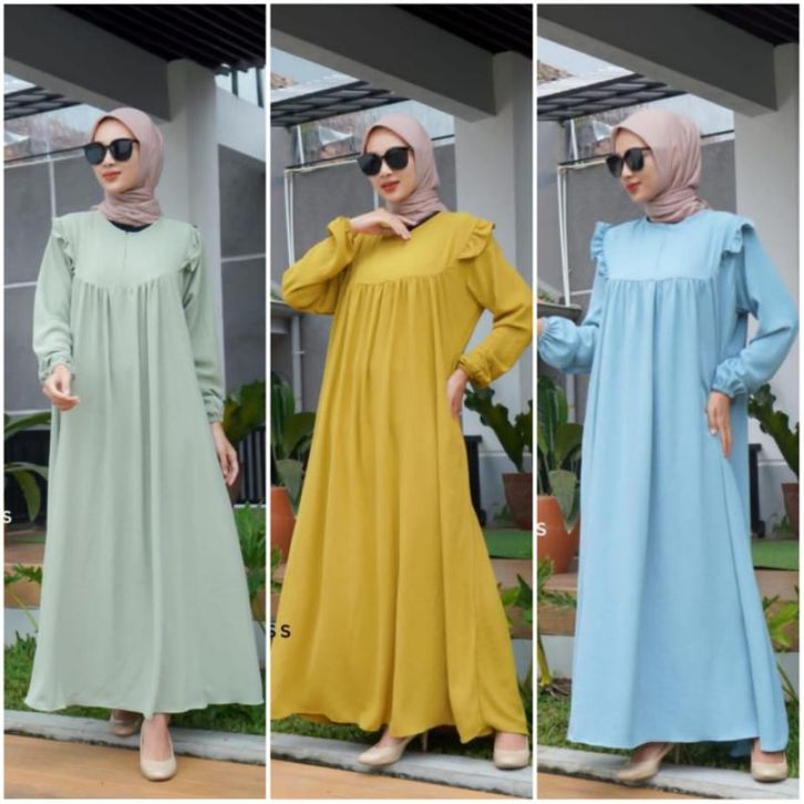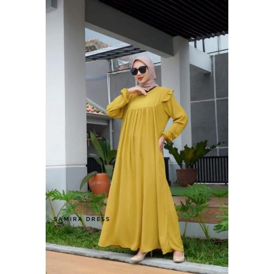 Samira Dress / Dress Crinckle Airflow/ Dress Ruffle Bahu/ Gamis Airflow Polos/ Gamis Remaja/ Dress Remaja/ Gamis Casual/
