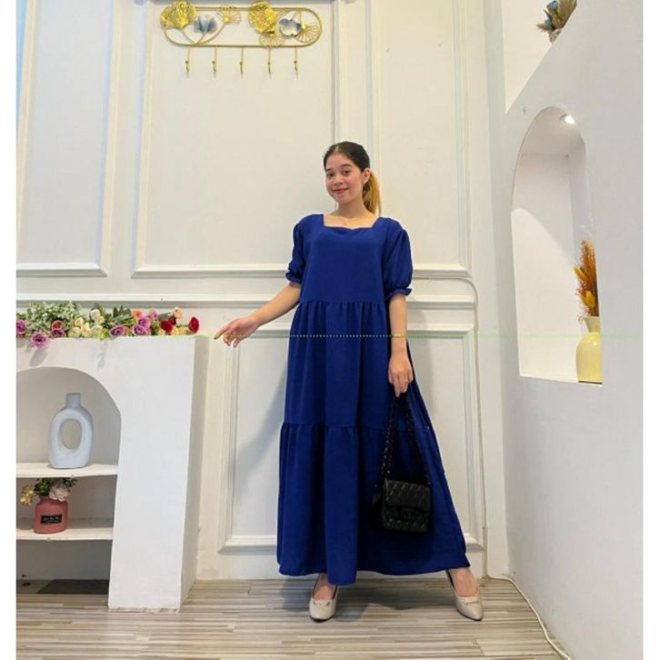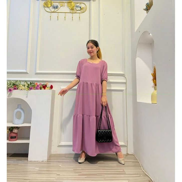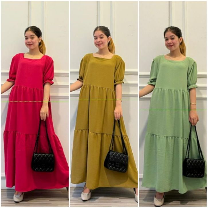 Friska Dress/ Long Dress Korea/ Dress Korea Polos/ Korean Fashion/ Outfit Korea/ Baju Wanita Korea/ Midi Dress Tangan Ba