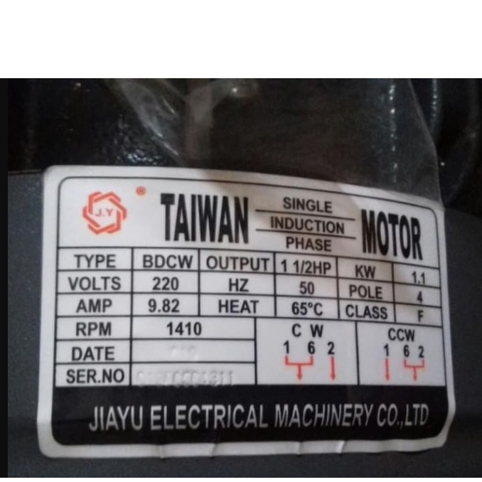 [Star] [Gratis Ongkir] 1.5 HP 1 Phase Jiayu Dinamo/Elektro Motor/Electro Motor 2P/4P