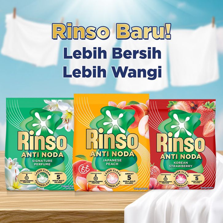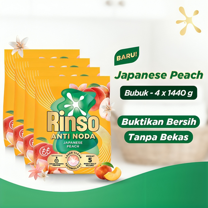 Deterjen Cair Bubuk [Lebih Hemat 25%] Rinso Baru Detergen Bubuk Varian Japan Peach 1440g x4 Terbaru