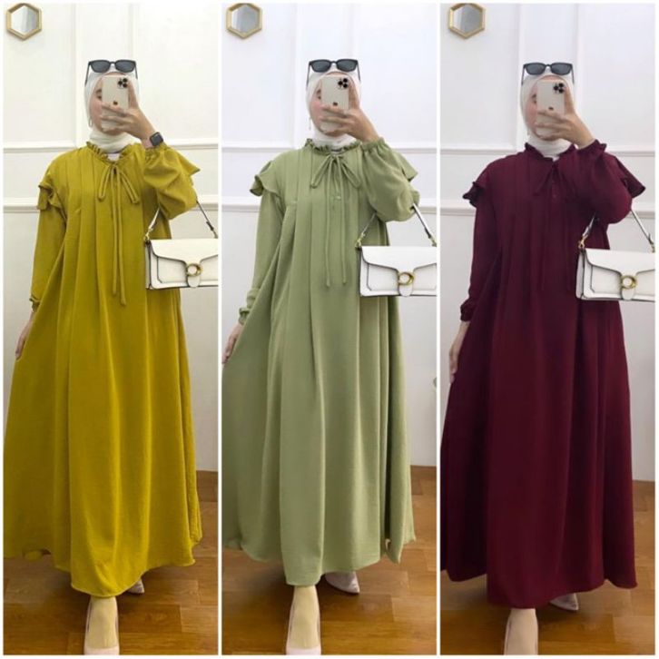 Madeena Dress/ Dress Cringkle Airflow/ Gamis Pesta/ Gamis Kondangan/Gamis Formal/ Dress Bridesmaids/ Dress Syari Polos/G