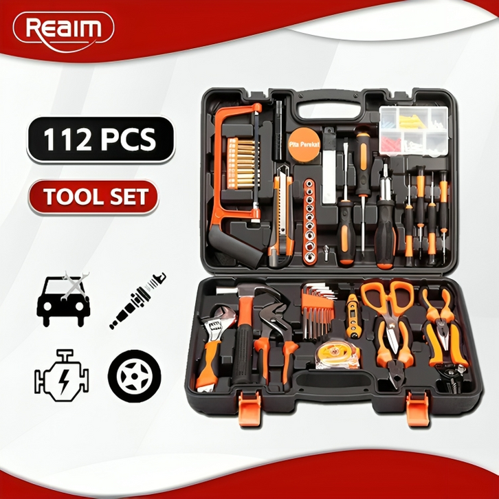 Reaim Hand Toolset 112PCS Tool Kit Alat Rumah Tangga Tool Kit Set Toolkit Toolbox Reaim-Gjtz112