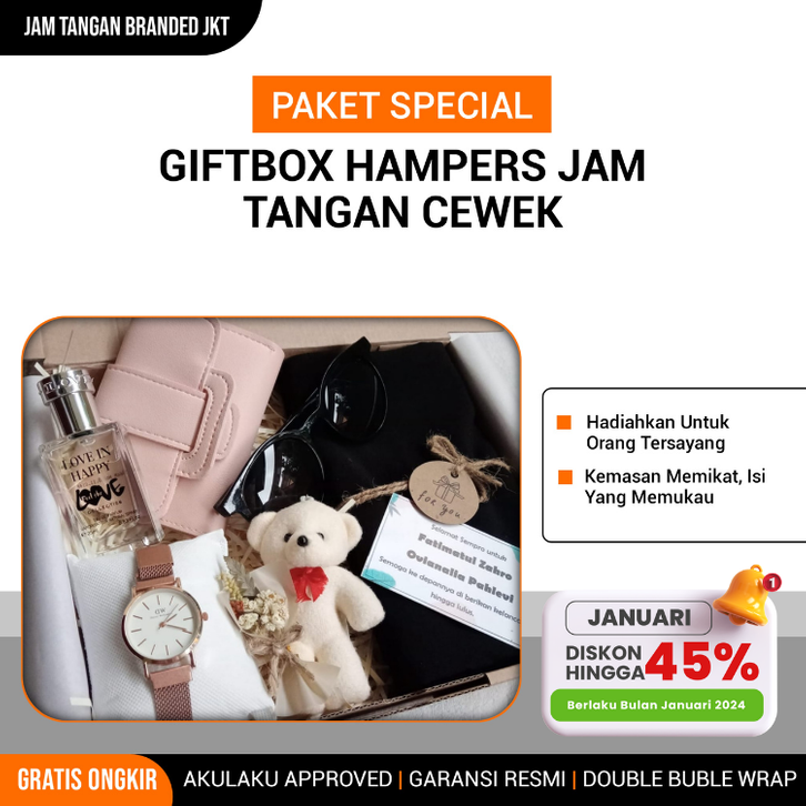 Giftbox Hampers Jam Tangan Cewek Strap Rantai Pasir Paket Buket Kado Ultah Spesial Ucapan Hadiah Wisuda Pacar Teman