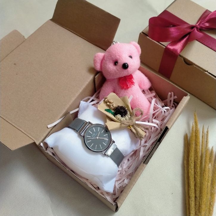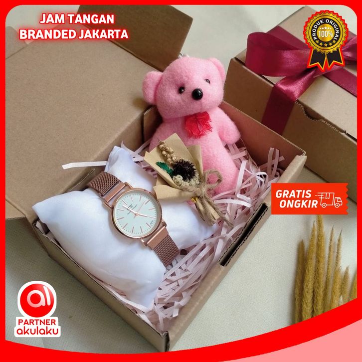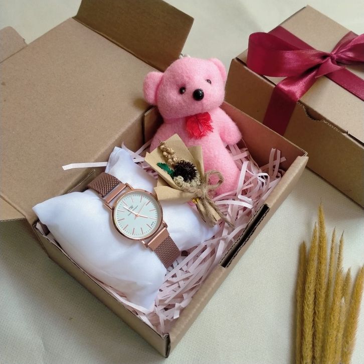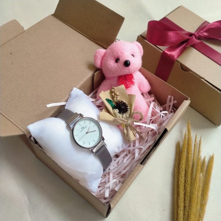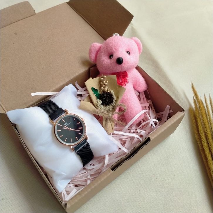Hampers Jam Tangan CewekTali Rantai Pasir Gitfbox Ulang Tahun Wisuda Pacar Teman Plus Ucapan Kado Buket Bunga