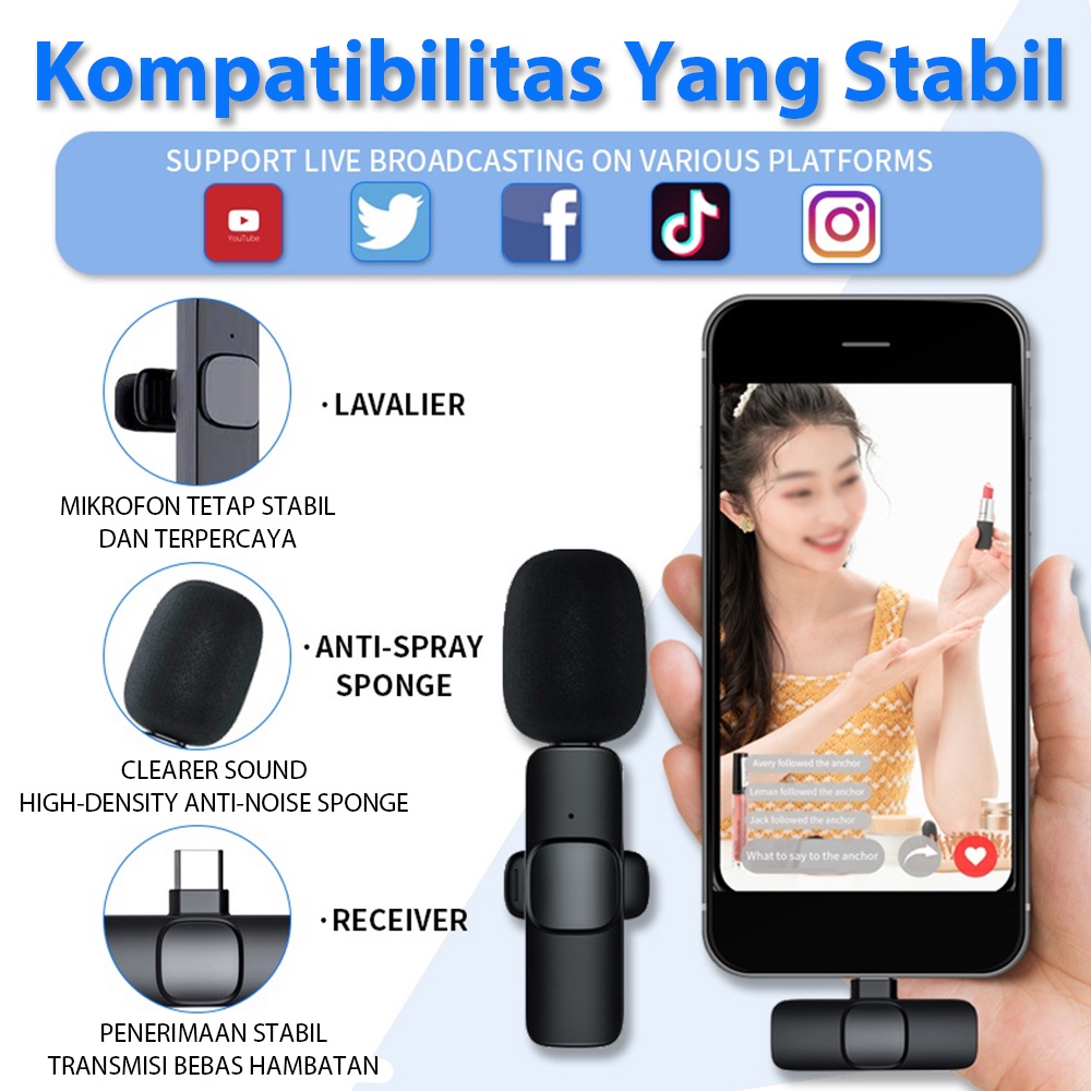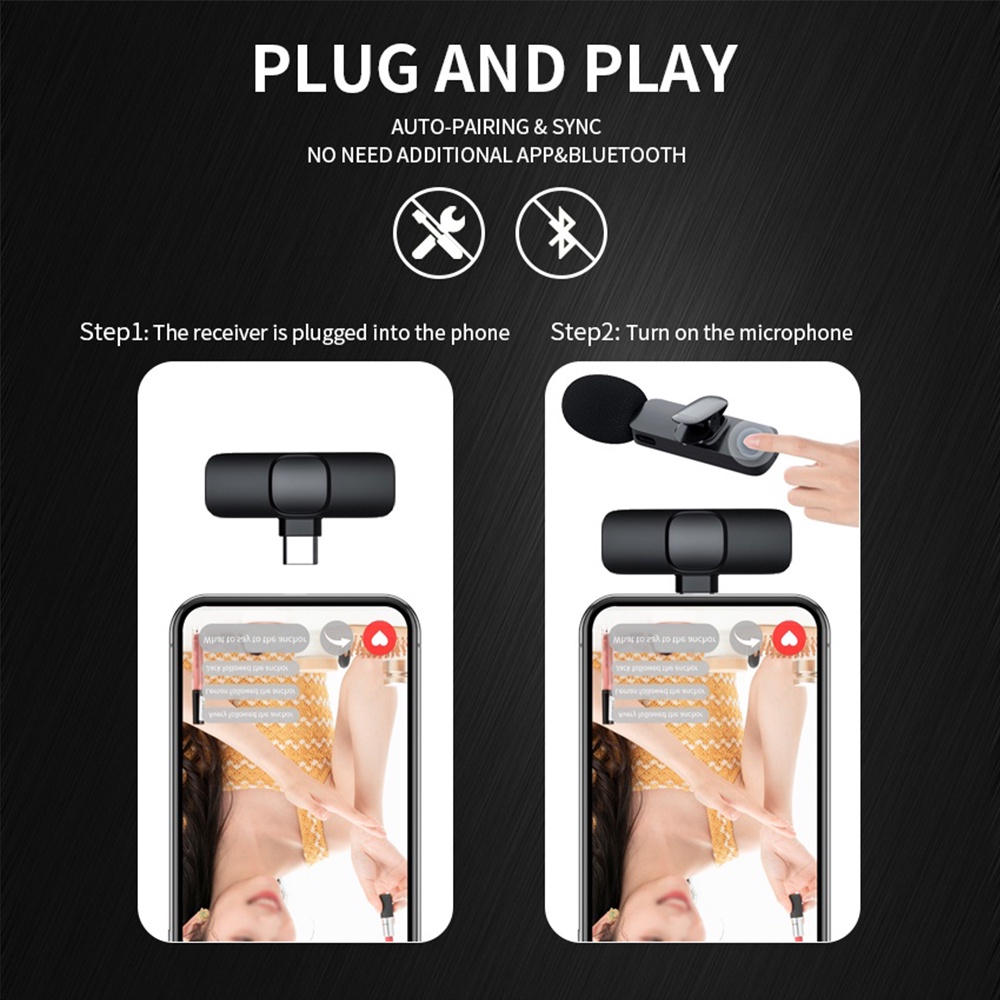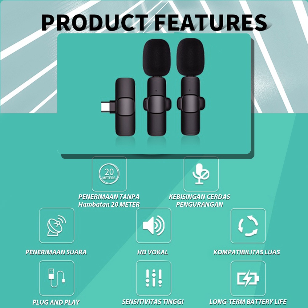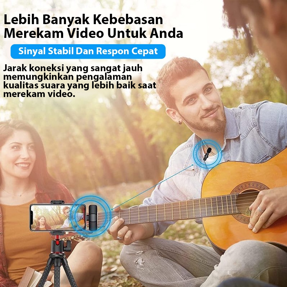 WIRELESS LAVALIER MICROPHONE 2.4GHZ PLUG AND PLAY DUAL MIC CLIP ON WIRELESS FOR IPHONE AND ANDROID TYPE-C TANPA DP NEW