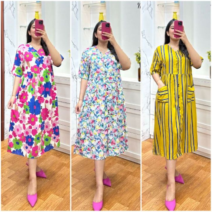 Viona Dress/ Floral Dress Viral/ Dress Bunga Bunga/ Midi Dress Korea/ Dress Midi Rayon Motif/ Daily Dress/ Dress Motif B
