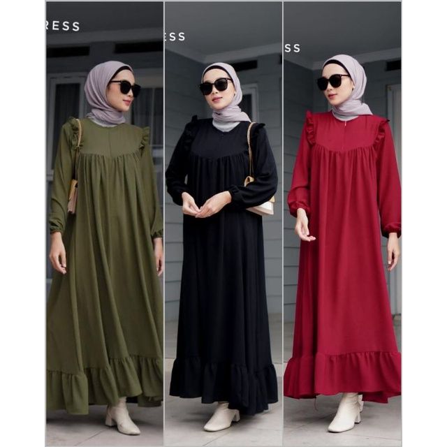Galeriazkiya Farasya Dress Gamis Crinckle Polos Dress Airflow Tangan Ruffle Gamis Busui Jumbo Terbaru Gamis Pesta Kondan