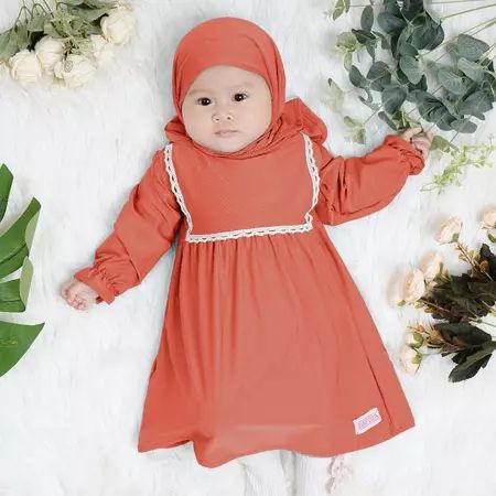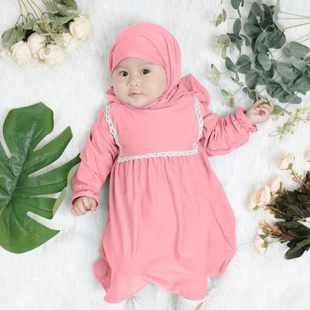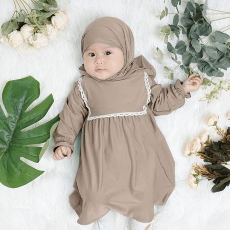 Gamis Bayi Perempuan New Aqila 0-6 bulan 7-19 bulan (Free Hijab)