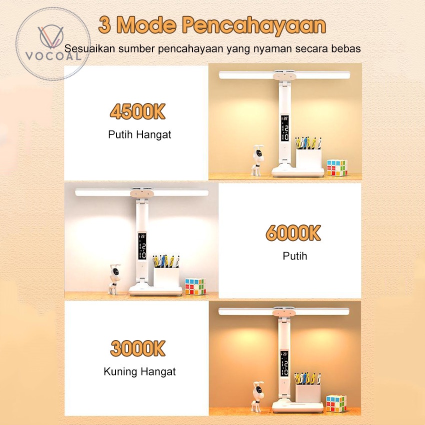 VOCOAL LAMPU BELAJAR LED MEJA DUA KEPALA BACA LIGHT LAMPU BELAJAR MULTIFUNGSI PENGISIAN DAYA LIPAT