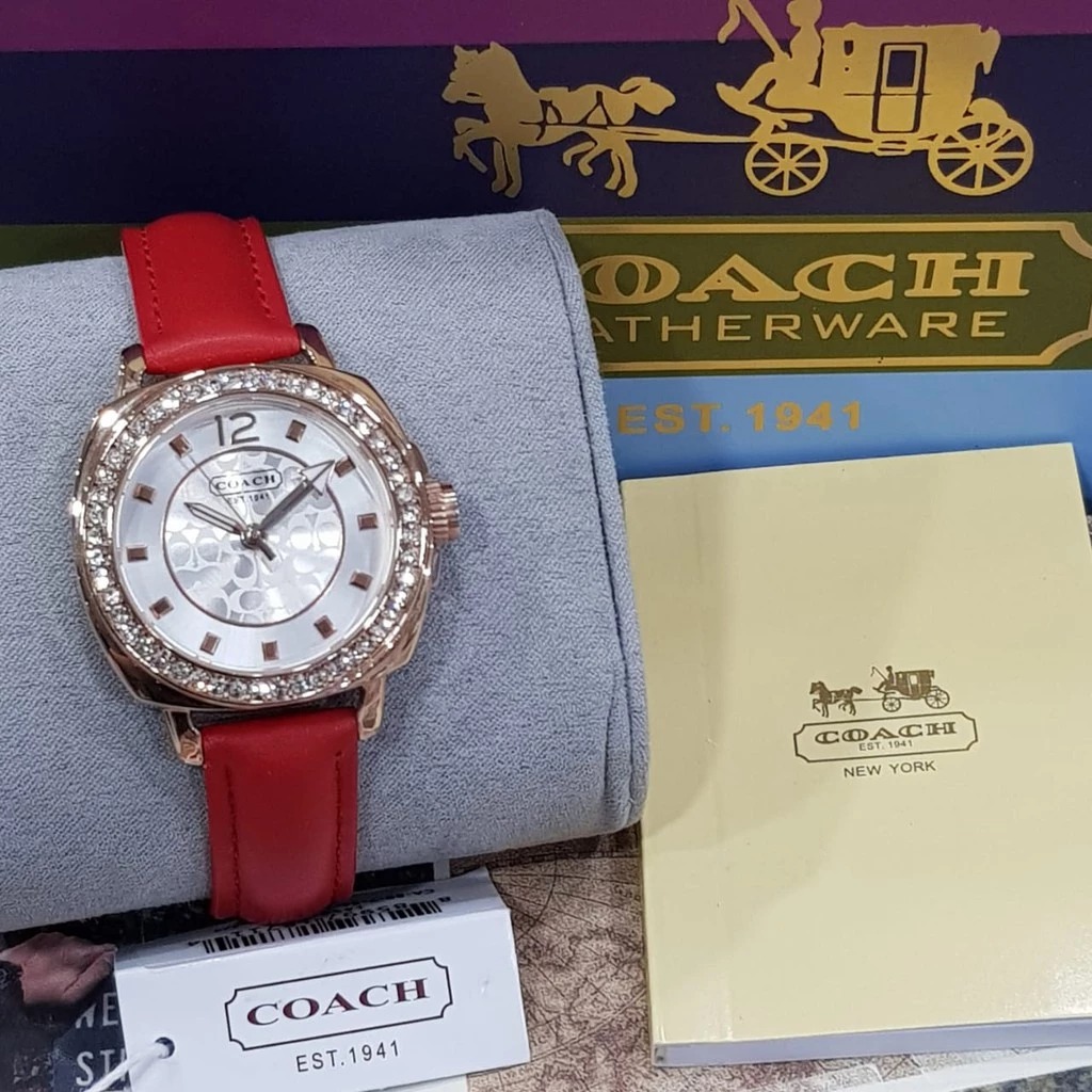JAM TANGAN WANITA COACH 14503151 ROSEGOLD RED LEATHER ORIGINAL - FREE ONGKIR