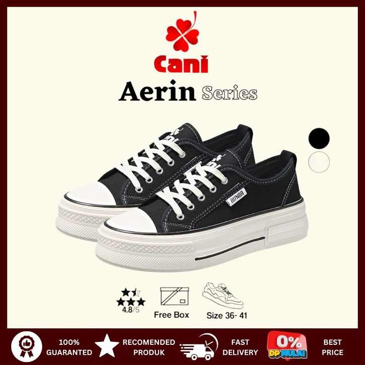 Cani Free Box (Size 36 - 41) Aerin Sepatu Wanita Kanvas Bertali kasual Fashion Import Korea 9178 Sneakers Kerja Kekinian