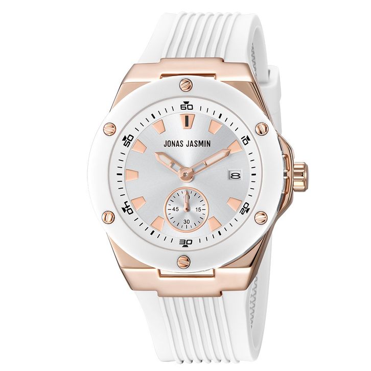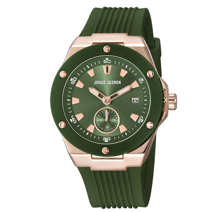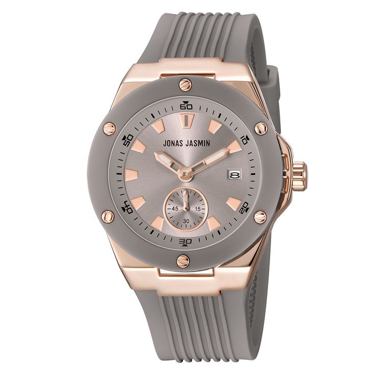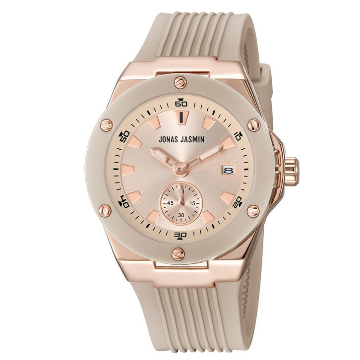 Jam Tangan Wanita Terbaru Original Jonas Jasmin 2250 JJ-2250L Detik Bawah Rubber Strap Tanggal Aktif