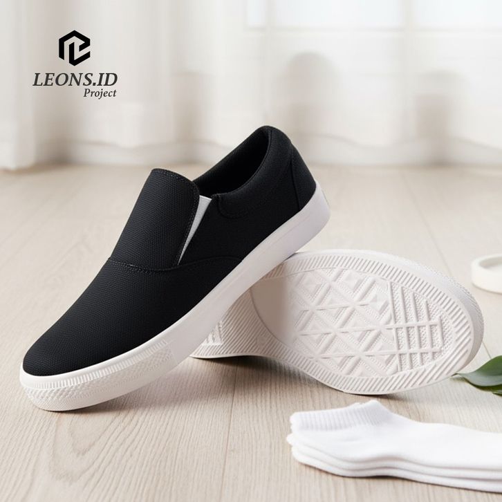 AIRON BLACK | Salisstore - LEON | Sepatu Pria Slip On Hitam Casual Original