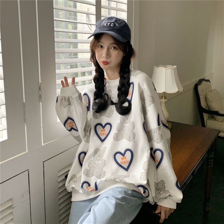SWEATER OVERSIZE BEAR lOVE PULL PRINT CREWNECK BAJU OVERSIZE SWEATSHIRT WANITA Cowok Cewek Hoodie TERBARU