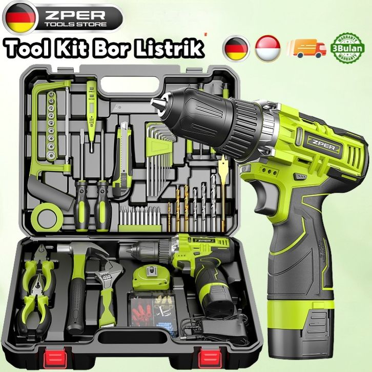 Mesin Bor Baterai Toolkit Set Alat Tukang Bangunan Lengkap Kotak Perkakas 120PCS Tool Box Besar
