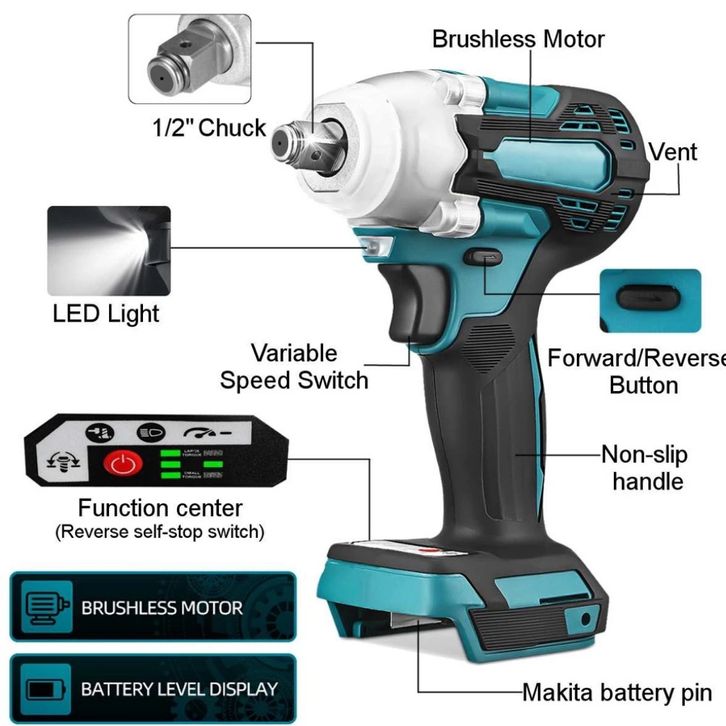 MESIN BOR UNTUK BAUT MOBIL Impact Wrench Electric Wrench 388V 680NM CORDLESS IMPACT WRENCH impact baterai