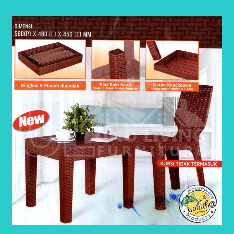 Meja plastik/ meja tamu/ meja kopi/ meja teras motif rotan TABITHA Original
