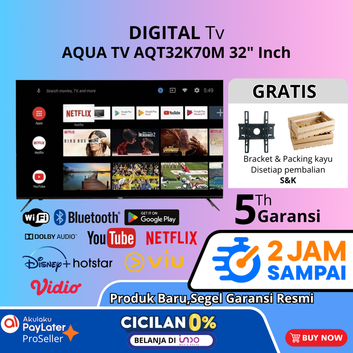 [ 2 JAM TIBA ] AQUA Elektronik TV Digital AQT32K70M 32 Inch HD Miracast 60Hz Refresh Rate Garansi 5 Tahun