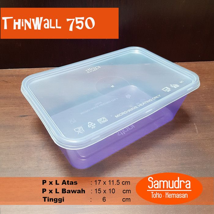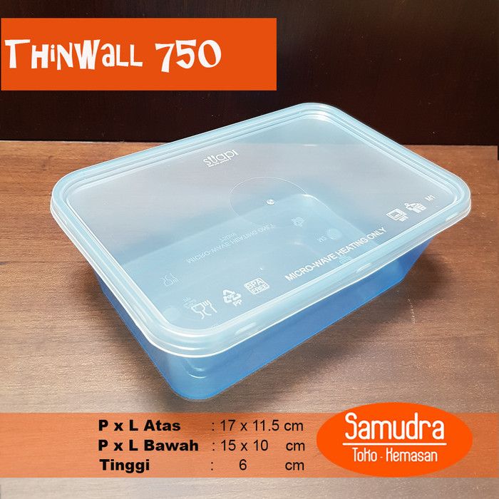 Food Container Suapi 750 ml Warna / Kotak Makan Plastik / Thinwall - Biru Elegan