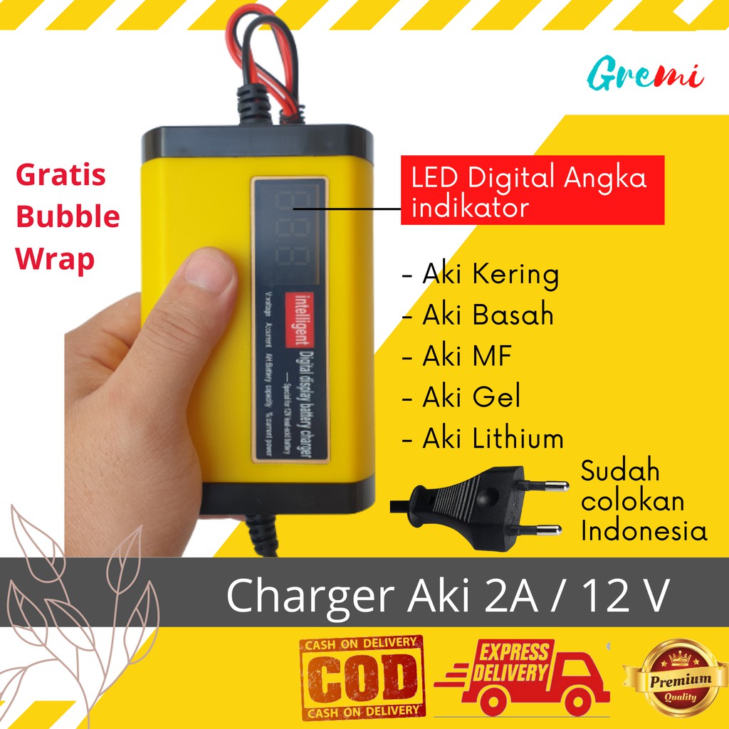 Charger aki 2A 12V Motor Mobil Casan Aki Carger Aki Alat Cas Aki Charger Accu Gremi