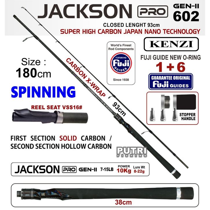 JORAN PANCING MURAH KENZI JACKSON PRO 602 GEN-II - Joran Spinning Full X-Wrap Carbon Solid | Full Fuji Guide