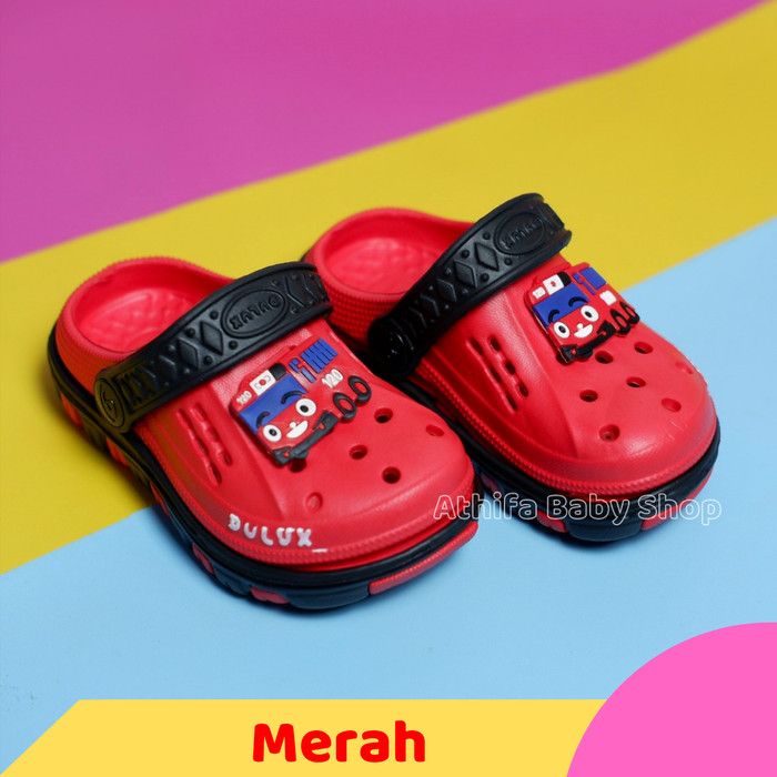 Sandal Anak Baim Laki Sendal Slop Bayi Balita Tayo 6 bulan 2 3 4 Tahun - 19, Merah