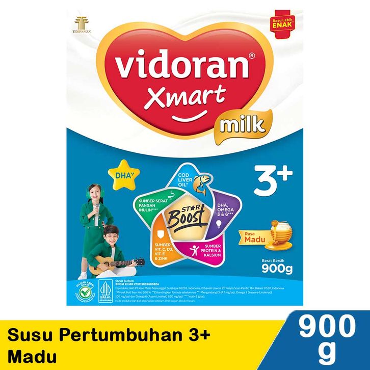 Susu VIDORAN XMART 3+ rasa Vanila / Madu isi 900 gram