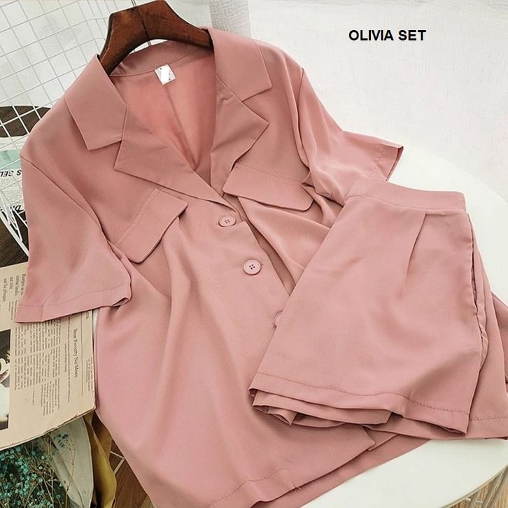 STELAN 2IN1 OLIVIA BIACA - SETELAN BAJU CEWEK CELANA PENDEK BAJU LENGAN PENDEK - BAJU SANTAI RUMAHAN - FASHION WANITA