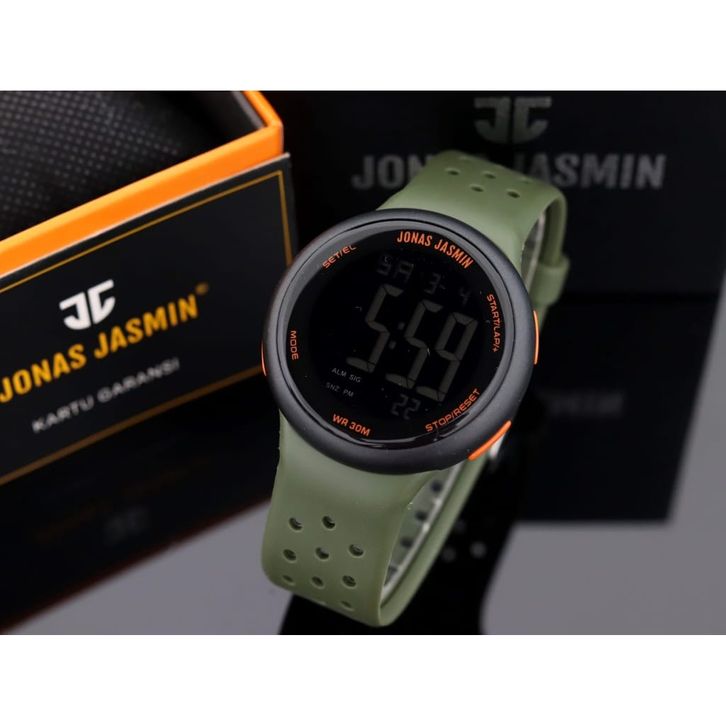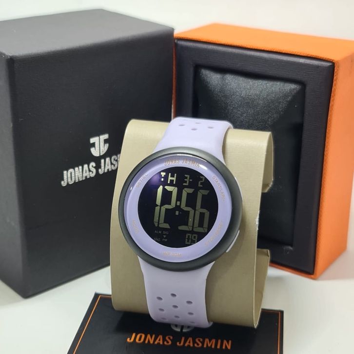 Jam Tangan Wanita Jonas Jasmin Bulat Digital LED Strap Rubber Karet Anti Air Elegant Include Box Baterai