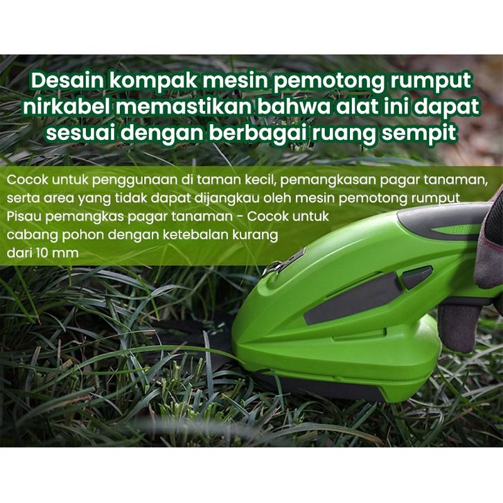 Pemangkas rumput dan semak tanpa kabel 7.2V, pemangkas pagar 2-in-1 yang dapat diisi ulang, alat pemangkas rumput rumah
