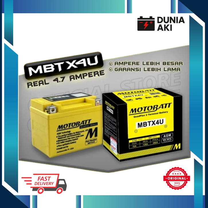 [Star] Aki Motor Motobatt Quadflex MBTX4U - 4.7Ah (Garansi 1 Tahun)