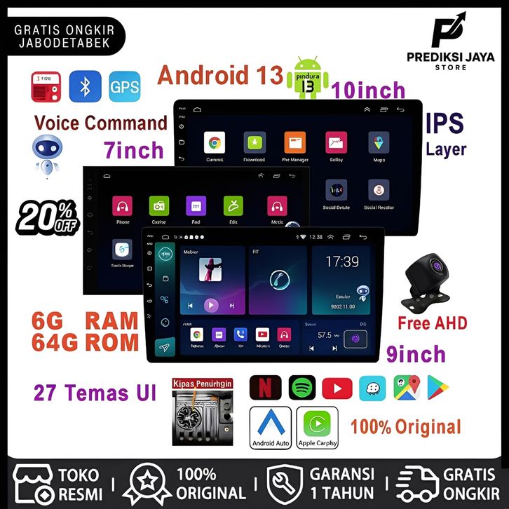 ๐๐๐.๐ Universal Dual Kipas Head Unit Android 7 9 10 Inch Lalahoo Double Din Carplay Audio Mobil Satu Paket Orca
