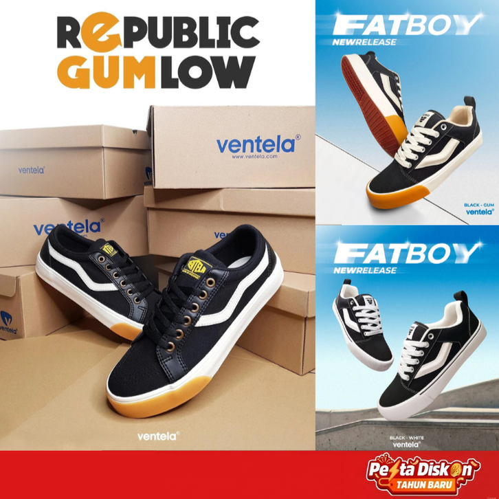 [Mall] SEPATU VENTELA PRIA ORIGINAL SEPATU VENTELA REPUBLIC BLACK GUM VENTELA FATBOY LOW GUM SEPATU COWOK SEPATU LOKAL