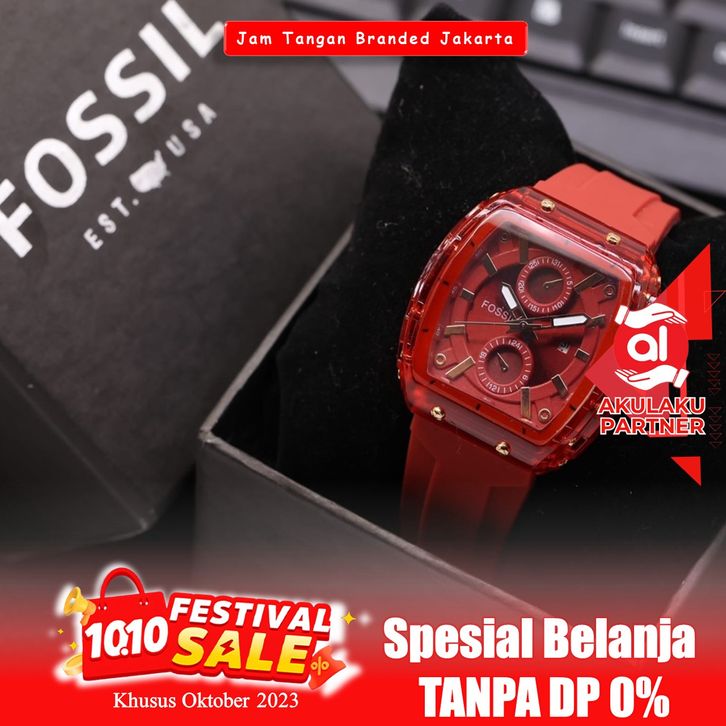 Jam Tangan Fossil Rubber Wanita Body Oval Tanggal Aktif Tali Karet Include Box Fashion Wanita Elegant Diameter 35 mm