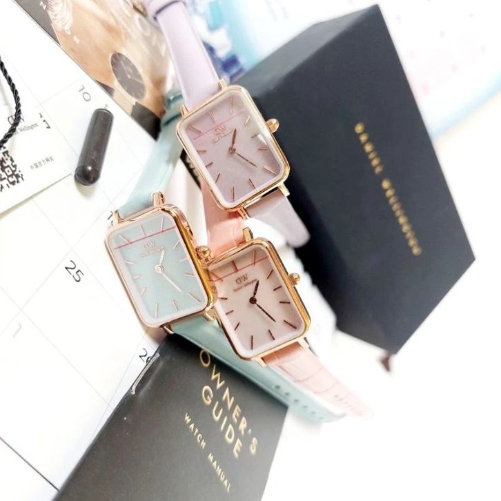 JAM TANGAN WANITA DANIEL WELLINGTON Quadro Rouge Pink LEATHER ORIGINAL-FREE ONGKIR