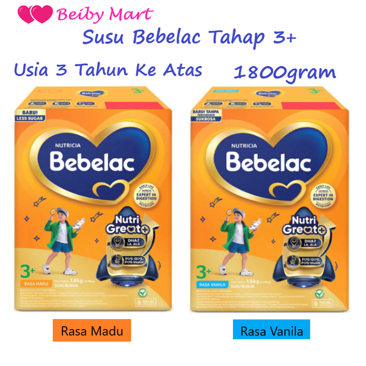 susu BEBELAC 3+ / Tahap 4 Rasa Vanila / Madu Netto 1800 gram Usia 3 Tahun Ke Atas