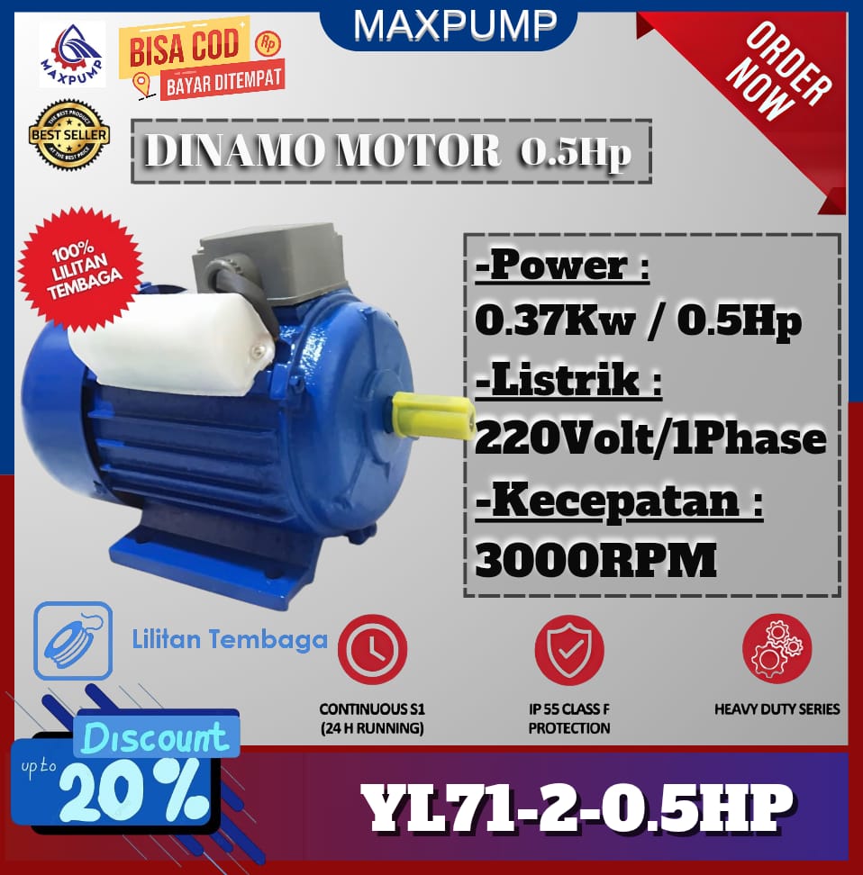 MAXPUMP YL71-2-0.5HP Dinamo Kompresor electro 0.5hp 220v 2860RPM 2pole Motor listrik dynamo