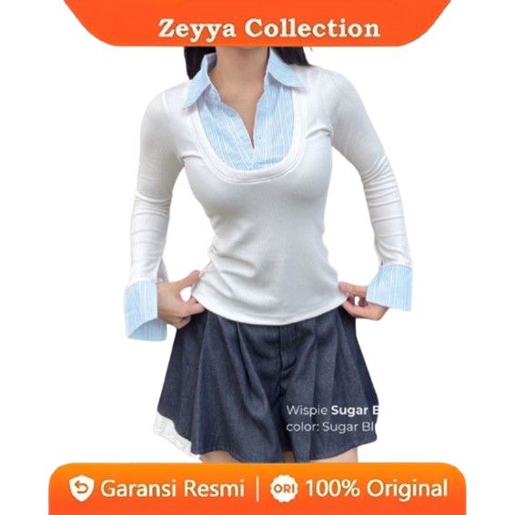 Atasan Wanita Slim Fit Kemeja Knit Press Body Rib Kemeja Fitted Blouse Wanita Kombinasi Layer 2IN1