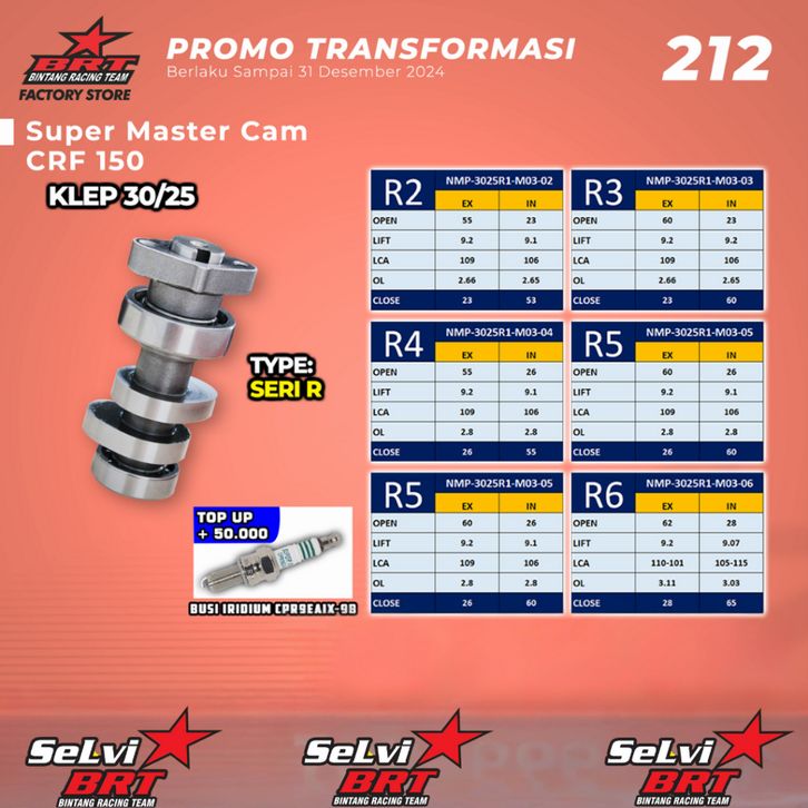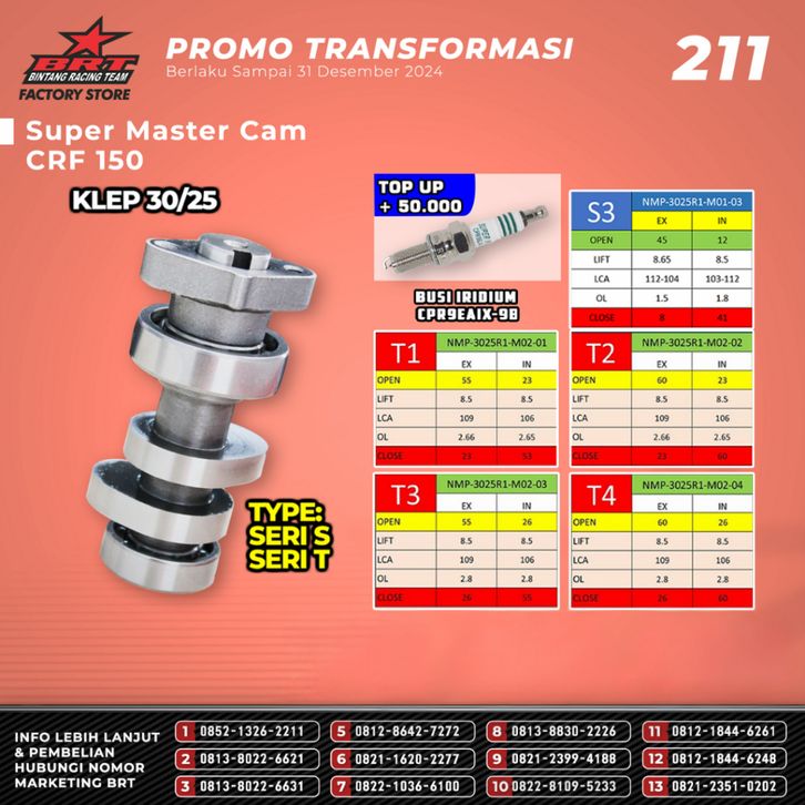 MASTER CAM BRT NOKEN AS CRF 150/ NEW MEGAPRO/ VERZA 150 TIPE S T R
